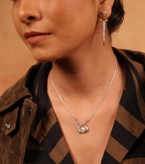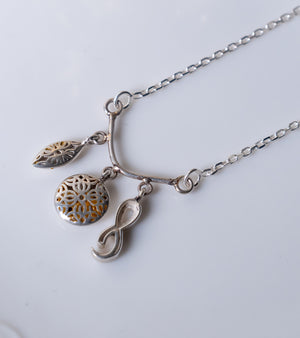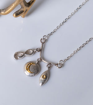 The Ari Necklace — a delicate blend of infinity, evil eye, and crescent charms, each carrying its own meaning of eternity, protection, and balance. Designed for everyday luxe, it layers beautifully to create your own individual look or shines effortlessly when worn solo. From desk to dinner, the Ari Necklace is your perfect day-to-night companion