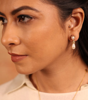 Infused with the romance of the Victorian era, the Celeste Pearl Earrings radiate celestial elegance—dreamlike yet powerful. With pearls symbolizing purity and grace, framed in vintage-inspired detailing, they bring heritage charm into a modern light. Style them with a flowing gown for ethereal evenings, a saree or lehenga for timeless bridal allure, or let them effortlessly elevate a blazer-and-denim look with understated radiance.