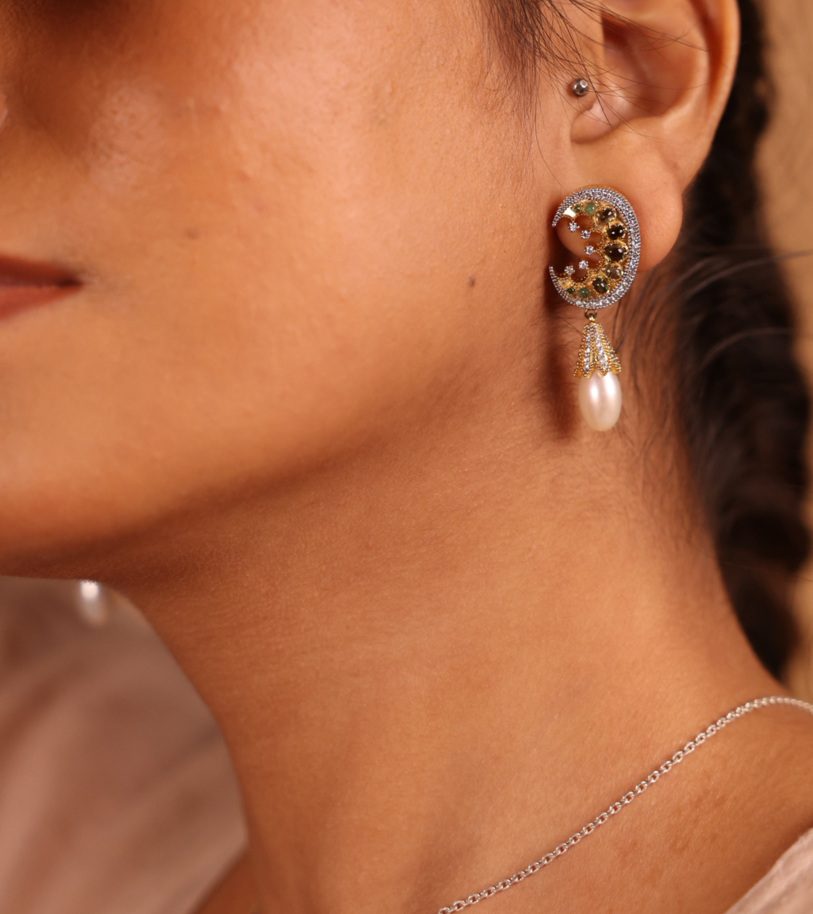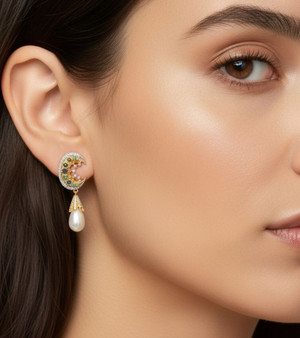 The Green Tourmaline Crescent Diamond Earrings echo vintage Victorian charm while reimagining it for the modern woman—tourmalines symbolizing strength, diamonds adding brilliance, and a crescent silhouette that feels both regal and timeless. Lightweight yet striking, they’re perfect for elevating everyday luxe looks or adding a touch of sophistication to evening ensembles.