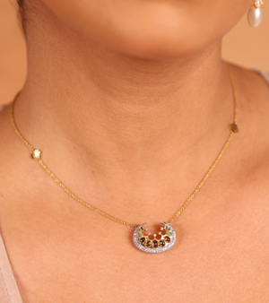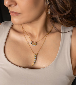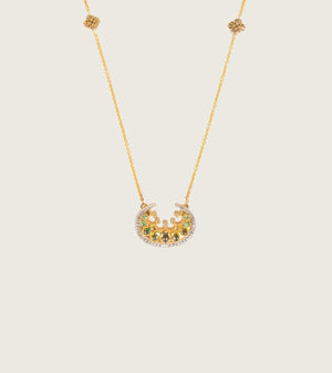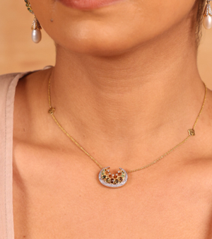The Green Tourmaline Crescent Diamond Pendant is a timeless piece that blends vintage Victorian charm with modern elegance—tourmaline for strength, diamonds for brilliance, and a crescent silhouette that feels both regal and effortless. Perfect for layering or wearing solo, it transitions seamlessly from everyday luxe to evening sophistication.