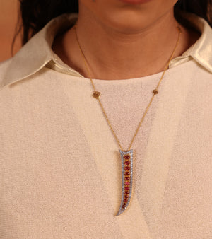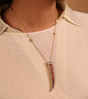 A striking fusion of Vintage European refinement and Indian craftsmanship, the Electra Dagger Pendant embodies feminine power, transformation, and timeless elegance. Style it layered over a high-neck blouse or sleek dress for a bold statement, or let it shine solo with a simple top for everyday luxe—effortless, versatile, and unforgettable.