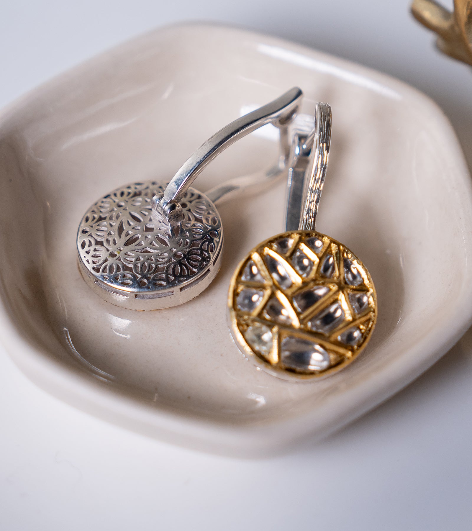 Polki refers to natural, uncut diamonds that are hand-polished without modern faceting. Being natural stones, each Polki diamond may have slight variations in shape, size, and lustre, as well as natural inclusions. These are not flaws, but inherent characteristics—a mark of their authenticity and charm.
