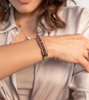 The Athena Bracelet from UNCUT Jewelry celebrates women who carry confidence and grace effortlessly. A modern heirloom with a bold yet refined design, it elevates both everyday and festive looks. Style it solo for a statement of power, or layer with delicate bangles for a chic, contemporary vibe—timeless elegance meets everyday luxe.