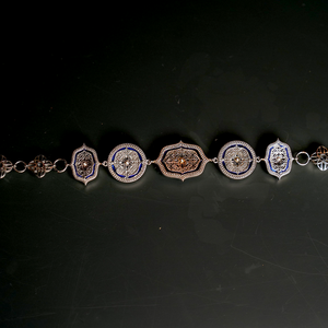 The Taskan Choker is where clarity meets complexity — a harmonious blend of heritage and modernity. Crafted in silver with 18K and 22K gold, it features natural FG VS diamonds, Polki (Vilandi), precious gemstones, and hand-painted blue enamel. A statement in timeless craftsmanship, it pairs effortlessly with both contemporary and traditional silhouettes — from a crisp shirt or sleek gown to a silk saree or off-shoulder blouse. Wear it solo for refined elegance or layer it for bold festive allure — the Taskan Choker is designed to celebrate individuality with modern grace.