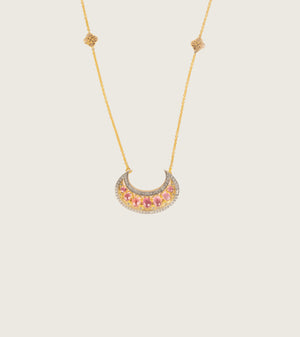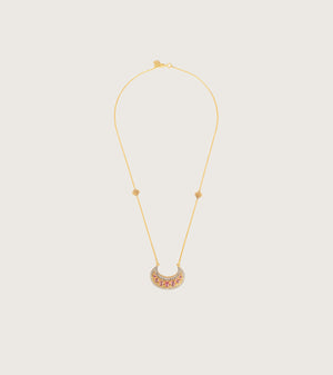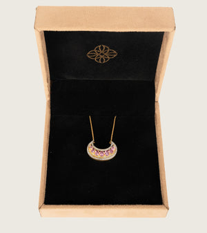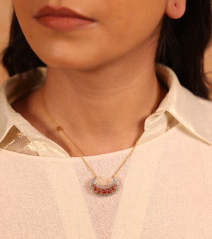A tribute to strength and transformation, the Theia Crescent Pendant celebrates the fearless UNCUT woman—radiant, resilient, and unapologetically bold. Rooted in Vintage European grandeur and Indian artistry, it blends heritage with modern luxury. Style it layered with delicate chains for everyday elegance, or pair with a bold neckline for a statement festive look—timeless, versatile, and effortlessly chic.