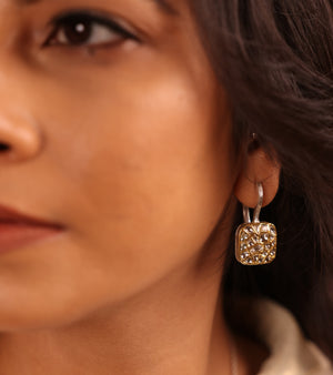 Lux Hoops — classic balis set with natural polkis in 22K kundan gold. Perfect for day-to-night elegance and a touch of festive sparkle. Style them with a simple kurta or crisp shirt for everyday chic, or pair with a lehenga or gown to elevate your celebratory look
