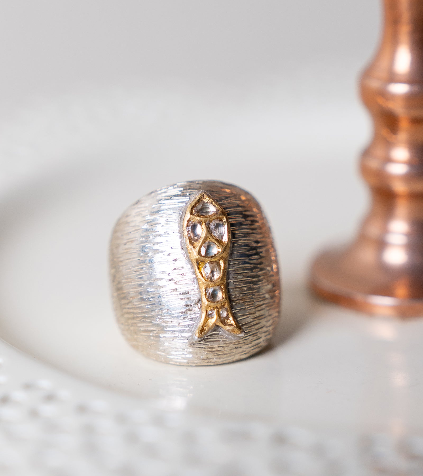 Make a splash with our Chunky Fish Motif Polki Diamond Ring. Bold design meets timeless elegance. Perfect for gifting!